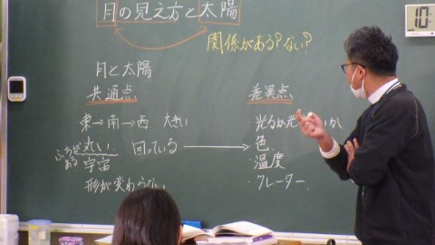 理科の授業で「月の見え方と太陽」について学んでいます。