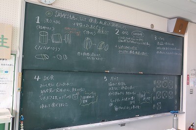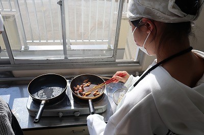 家庭科の授業で、調理実習を行いました。献立を考えて、その主菜を作るという実習です。