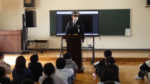 交通安全に関わる動画を見たり、警察の方からお話を聞いたりしました。