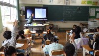 たいいくかんで、1・2くみ と 3・4くみ の 2クラスでたいいくの じゅぎょうをしました。