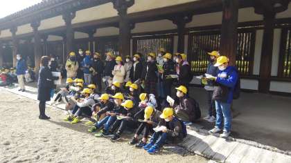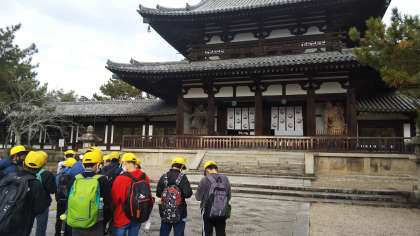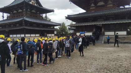 法隆寺に到着しました。雲っていますが、雨は降っていません。