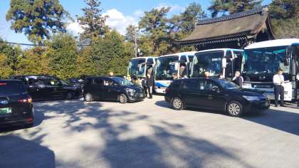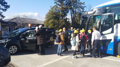 全班、タクシー研修から戻りました。常滑に向けて、予定通り14:15に出発しました。