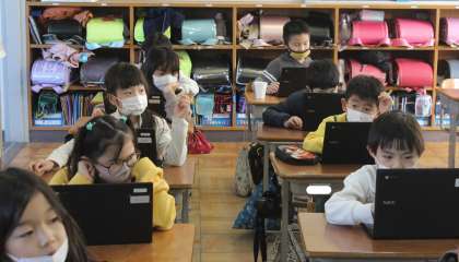 下 2年3組 Viscuit(ビスケット)をつかってプログラミングの学習をしています。キャラクター等を動かすために、指示を順番に出していきます。思い通り動いたかな。