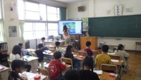 体育の授業の様子です。ペアになって、ストレッチをしています。