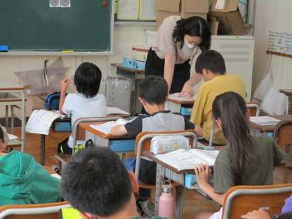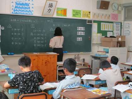 算数の授業の様子です。80÷30のような余りのある割り算のしかたについて考えています。