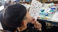 国語の授業の様子です。「冬の楽しみ」について、カルタを作っています。