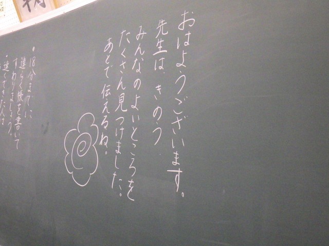 こちらは、少し前に撮影したものです。先生たちのあたたかなメッセージで一日がスタートします♪