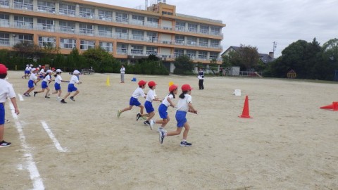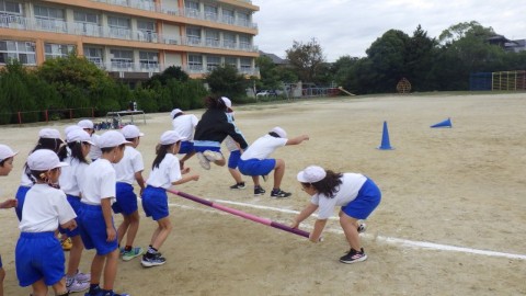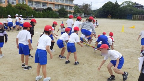 誰が棒の端を持つのかやどういうことに気をつけたら速くなるのかを先生の話を聞いたり、自分たちで考えたりして取り組んでいました。