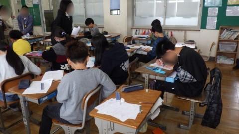算数の授業の様子です。拡大と縮小のまとめのプリントを各自で解いています。運動会が終わり、じっくりと学習に向き合う姿勢がとてもいいです。