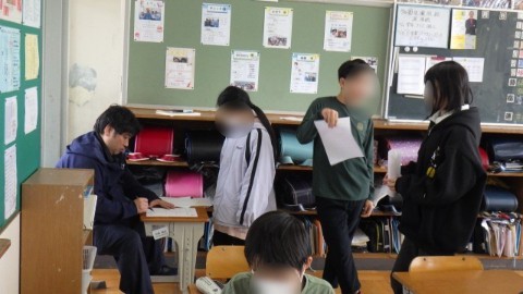前後左右のペアで紹介し合った後、代表の子が前でやりとりを披露してくれました。