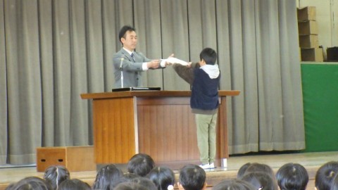 学年ごとに代表児童が修了証を校長先生から受け取りました。