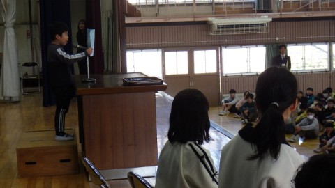 その後、校長先生のお話を聞き、代表児童による発表がありました。