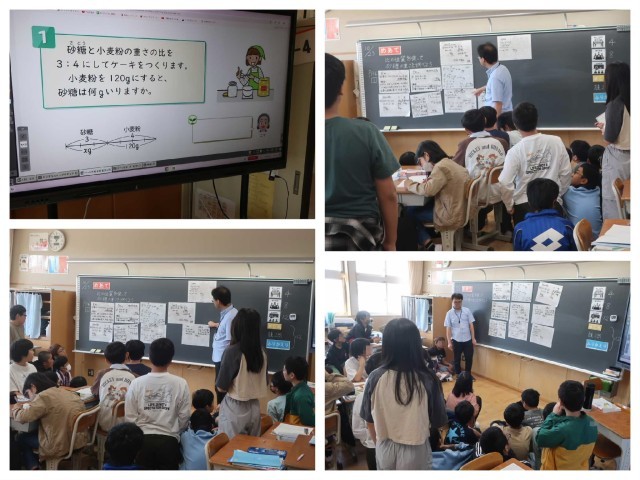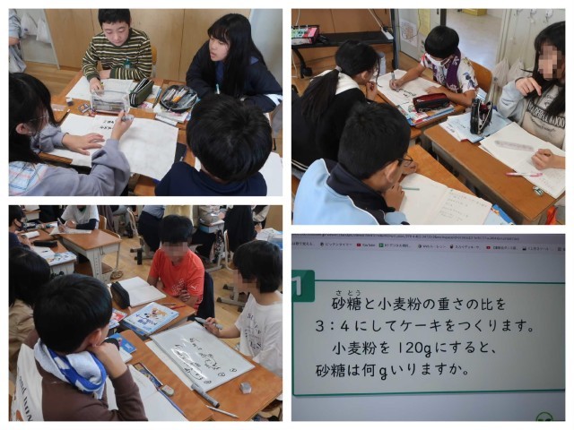比とその利用・・・難しそうですが、みんなで意見を出し合って学習を進めていました。さすが、6年生という授業内容でした。