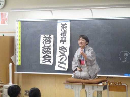 6年生の国語の授業で、日本の古典文学「狂言」が出てきます。その単元の一部に、「落語」が紹介されています。そこで、本校職員で学生時代に落語研究会に所属していた先生によるミニ高座がありました。