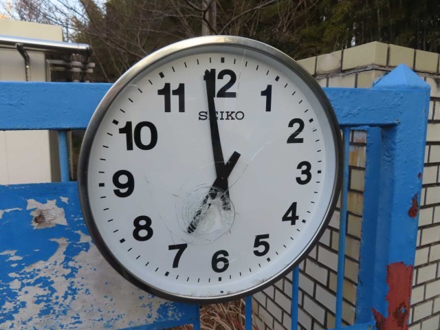 登校してくる児童のみなさんの、時間の目安になっていた、大切な時計です。そう思うと、本当に心が痛いです。