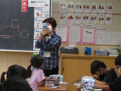 4年理科「電流のはたらき」は、上のような課題で実験に取り組んでいました。3年生の「電気の通り道」では、豆電球を使っていましたので、答えは「変わりません」です。でも4年生はモーターを使います。モーターが逆向きに回転したり、検流計で電流の向きを確かめたりしました。
