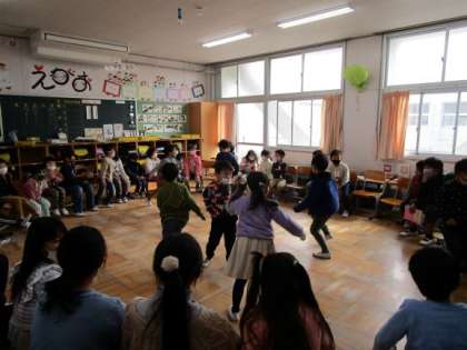 3匹のこぶたの劇、くじ引きバスケット、3択クイズ、進化じゃんけんなど、工夫されたコーナーで楽しむことが出来ました。