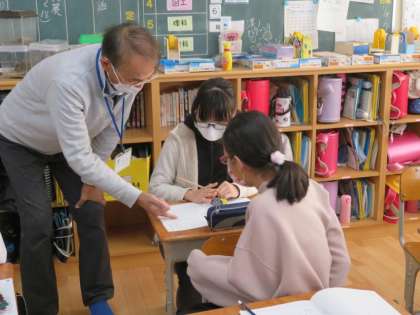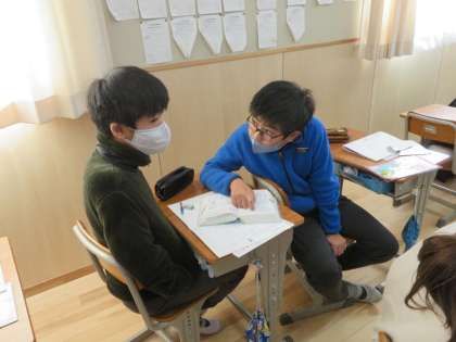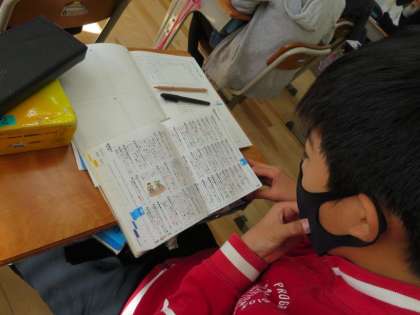 書き初めで書く言葉を考えていました。1年の心構えや抱負・目標となる言葉を、4文字以内で選びます。不屈、一心不乱、将来、広い心…、思い思いの言葉を書き出していました。その中から1つ選びます。