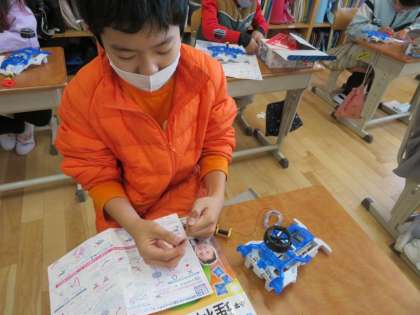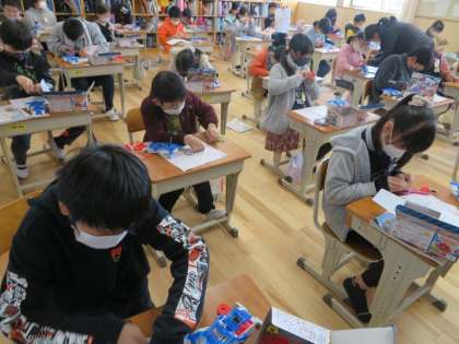 電磁石の実験をする準備で、5年生が苦戦していました。エナメル線のコーティングを削るのが、なかなか難しいようです。慣れると簡単なのですが、はじめは仕方ないですね。