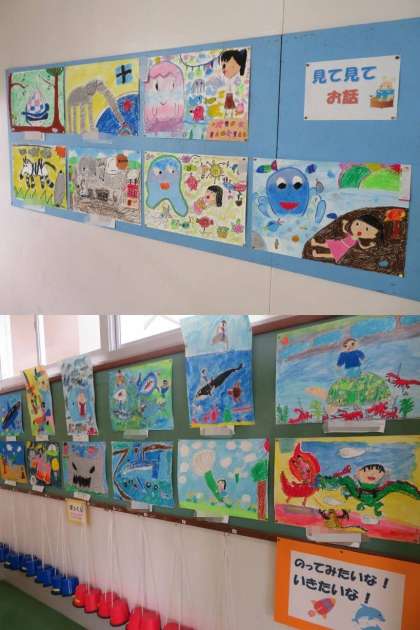 明日からの個人懇談、よろしくお願いします。教室前に、子供たちの作品が掲示してありますが、昇降口にも掲示があります。ぜひ、ご覧ください。