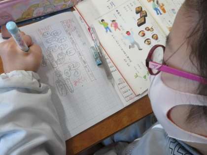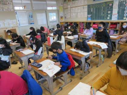 一人一人で考えた後は、友だちのノートを見せてもらって、自分が見つけいない言葉を付け足しました。