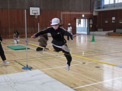 高跳びの最終の授業です。練習すればするほど、記録が伸びてきました。一番伸びた子は、25cm記録を更新した子もいました。