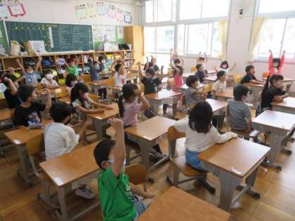 クイズ形式で学習ました。正解したときは、みんなガッツポーズで大喜びでした。