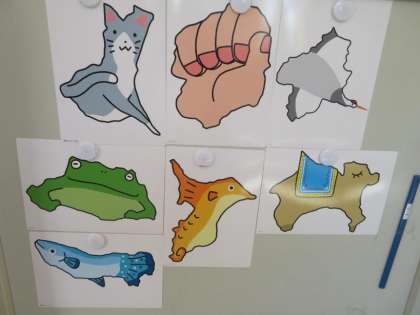 4年生の廊下に、なにやらおかしな絵が貼り出されています。よく見ると、都道府県の形をしています。ただ単に、形を覚えようとすると、なかなか覚えられません。身のまわりの物に視覚的に置き換えることで、覚えやすくなるようです。