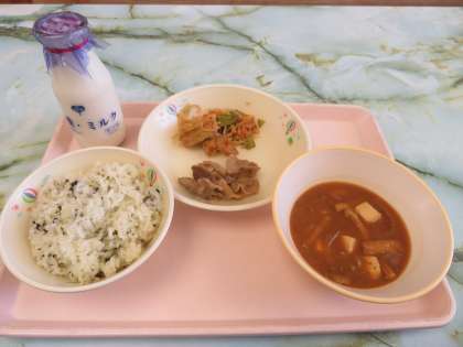今日の給食には、さといも、さつまいもなどの秋野菜がたっぷり入った味噌汁がつきました。これは、今月の料理紹介の「味わおう」で紹介されています。まだ暑い日が続きますが、みんな秋を堪能しました。