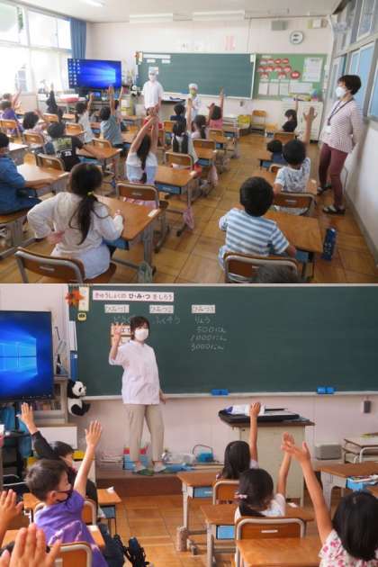 栄養教諭といっしょに『給食の秘密』の学習をしました。