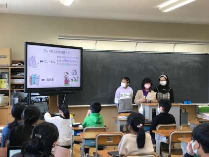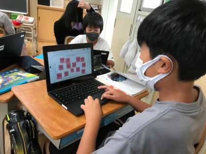 この単元では、「どうすれば学校生活をもっとよくしていくことができるだろうか」について、互いの立場を明確にしてグループで話し合う活動をしました。教室や廊下にゴミや落とし物がよく落ちているという現状から、解決方法を班で考えていきます。今回は、ジャムボードを用いました。自分の意見を貼り付けて、話し合いを進め、原稿作りを行いました。また、写真を取り入れるなど、分かりやすくまとめたスライドを用いて、堂々と発表していました。