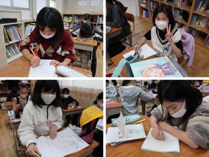 イラストクラブの様子です。毎年、各自の作品が渡り廊下に展示されます。今年は、どんな傑作が貼り出されるか楽しみです。