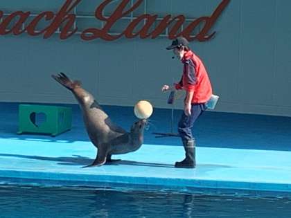 園内に入り、みんなでアシカショーとイルカショーを観ました。イルカたちの新技メリーゴーランドも披露してもらいました。