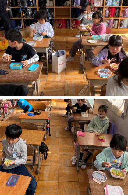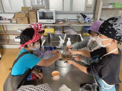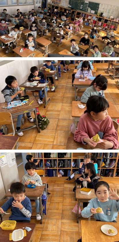 2年生の鬼まんじゅう作り、3クラス目です。このクラスも、美味しくできたようです。