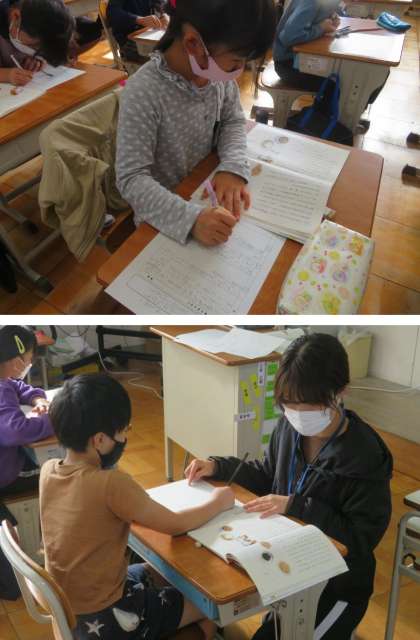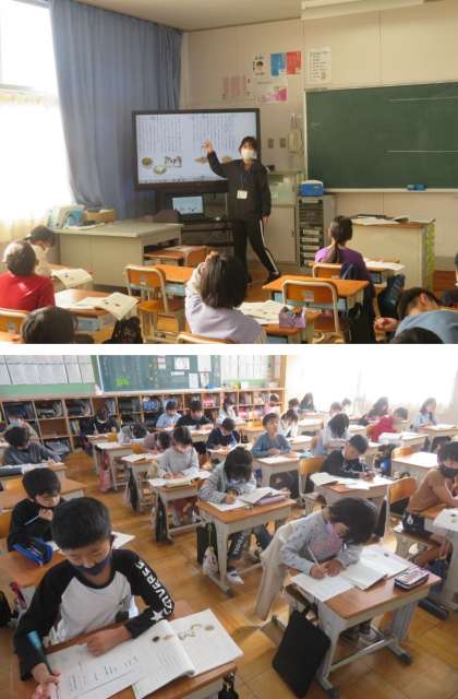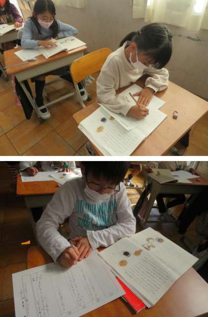 大豆が姿を変えてできた食品についての説明文の読み取りです。それぞれの食品によって、変身の仕方が違います。大豆を美味しく食べる工夫について、表にまとめていきました。