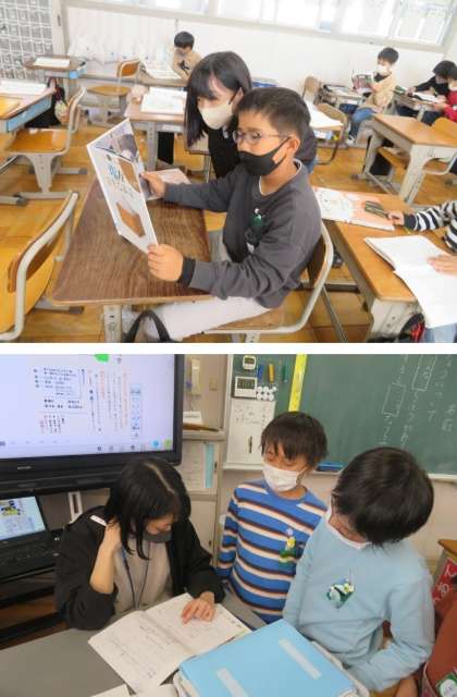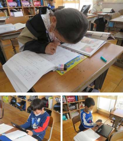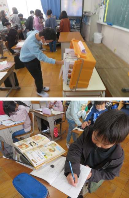 これまで読みとってきた説明文「すがたをかえる大豆」をお手本に、食べ物の秘密を紹介する文章を書きます。本やタブレットで調べて、米や麦などが、どんなふうに姿を変えるのか調べながら文章にしていきます。