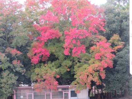 11月7日の立冬を過ぎ、暦の上では冬ですが、やっと校庭の木々が色づき始めました。やっと紅葉前線が通過したようです。まだまだ秋を楽しむことができます。