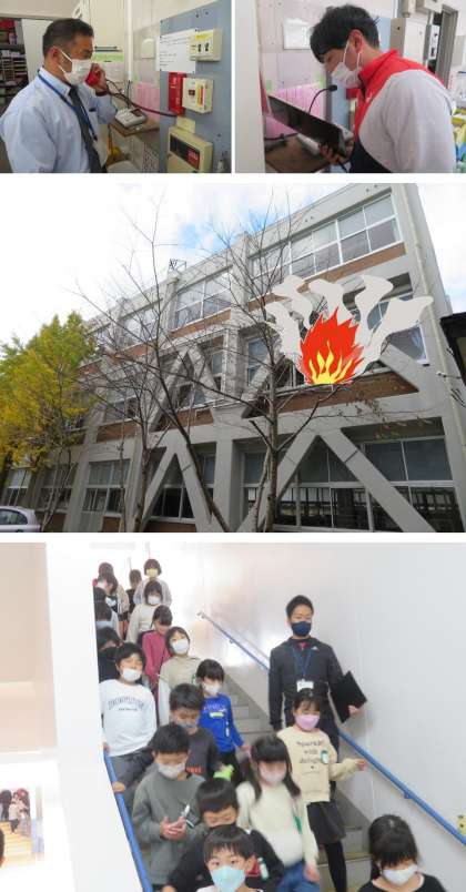 11月18日5限、空気が乾燥し火災が発生しやすくなる冬を前にして、火災避難訓練を行いました。理科室から火が出た想定で行いました。実際にベルを鳴らし、消防署への通報も訓練として行いました。子供たちは、静かに、素早く避難することができました。