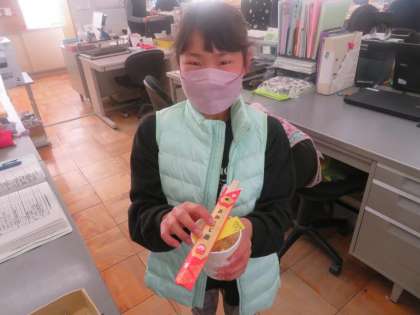 片付けをして授業が終わってから、クラスの代表の子が、お裾分けを持ってきてくれました。みんなが楽しそうに体験している姿を見に行ったのですが、なんか請求してしまった感じになってゴメンなさい。でも、とっても美味しかったよ。