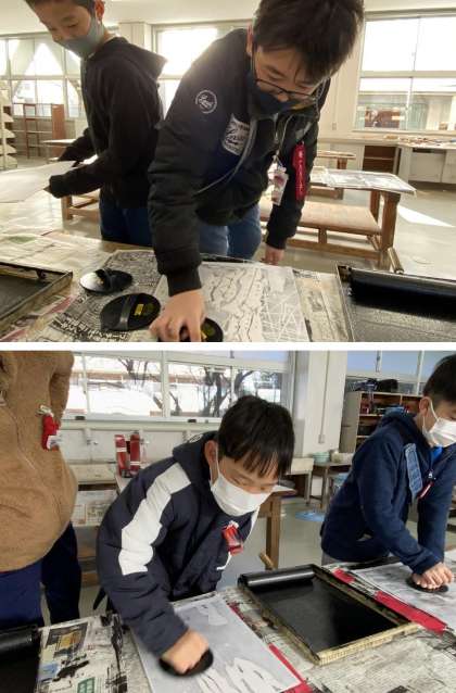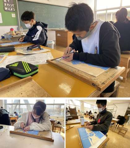 小学校最後の図工の作品、木版画が完成してきました。日本・世界の歴史的建造物を図案にした版画です。こまかな下絵を描いた子ほど時間がかかっていますが、あと少しです。あわてず、ていねいに、最高の仕上がりにしてくださいね。