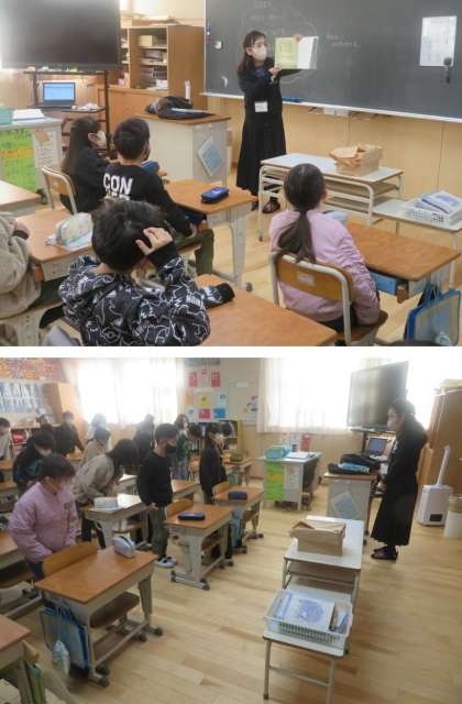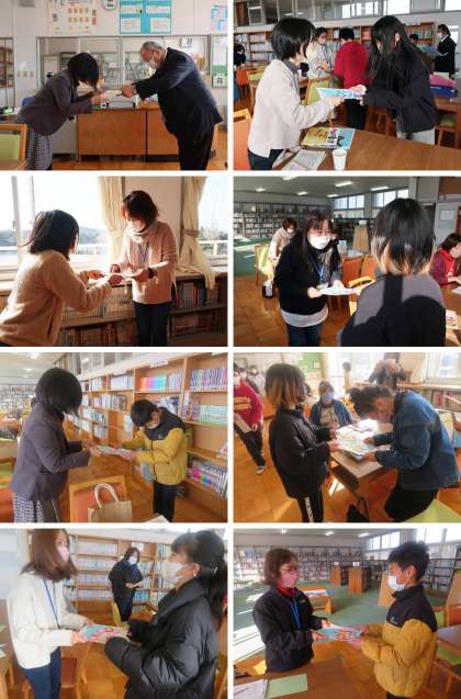 読み聞かせ後の教室でのお礼に加え、図書室に戻って来られたボランティアに皆さんに感謝の気持ちを伝えました。校長から感謝状をお渡しし、その後総務委員会からお一人お一人子供たちからのお礼の手紙をお渡ししました。