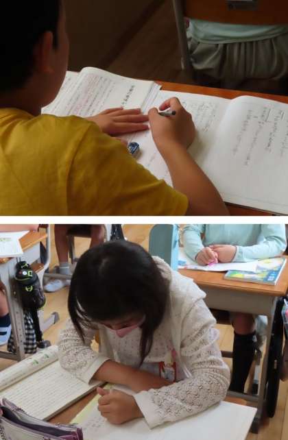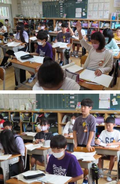 説明文の読み取りです。コップの例、英語のeatの例をあげながら、言葉の広がりについて説明をしています。高学年になり、かなり難しい文章となっています。授業の中で、全員で話し合いながら、1つ1つ丁寧に読み取りをしていきますが、家でも何回も読み込んでみてください。きっと、ぼんやりしていたところがハッキリしてきたり、気付かなかったキーワードを見つけたりできると思いますよ。