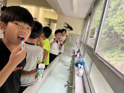 夜中に降った雨があがり、さわやかな朝です。みんな、元気に起き出しました。