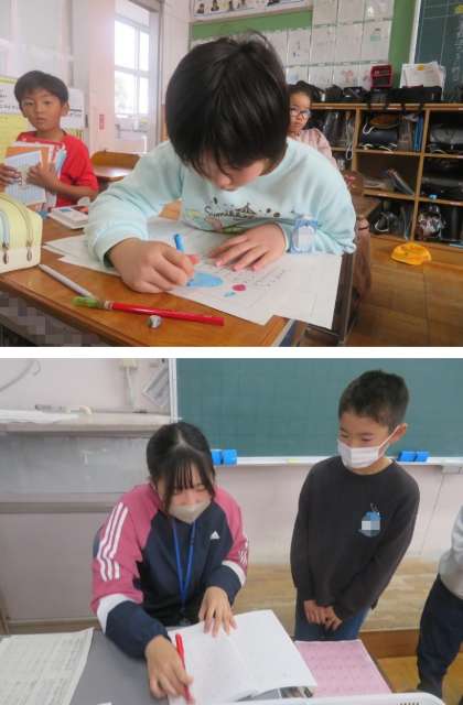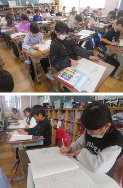宝島の地図を見ての物語が、かなりできあがってきました。お話が書けた子は、その場面の挿絵を描き始めました。完成間近です。