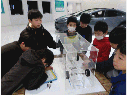 子ども達は、館内を回りながら、自動車の製造の過程や技術,製品の流通の仕方について楽しく学びました。