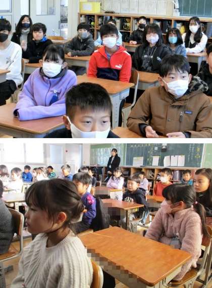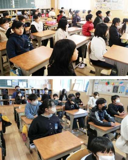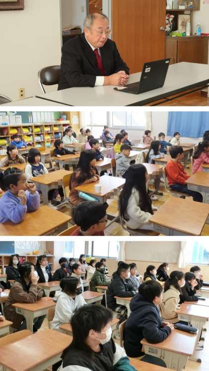 特に、年末年始には、門松やしめ縄、鏡餅などのお正月の準備をします。お雑煮やおせち料理などの正月ならではの料理も味わう機会があると思います。また、お年玉も、子ども達の楽しみの1つです。これら古くからの風習や正月用品には、それぞれ由来があります。また、お雑煮は地域によって、餅の形や味付けが全く違います。そんな紹介をしながら、ぜひ冬休みには、その由来や意味を詳しく調べて、日本文化を味わうよう呼びかけました。さらに、元日と元旦の違いを調べる宿題を出しました。