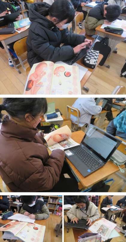 受精卵が母体内で育っていく様子を調べてまとめます。