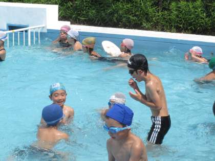 友だちと鬼ごっこをしたり、泳ぎの練習をしたりととても楽しそうです。