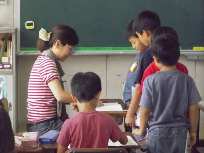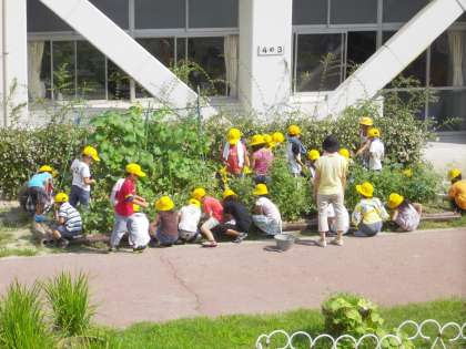 夏休みの友の○付けをしたり、学級園の世話をしたり…