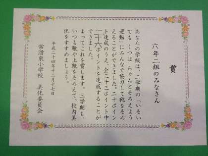 今日は、森 一真美化委員長から各学級への表彰がありました。